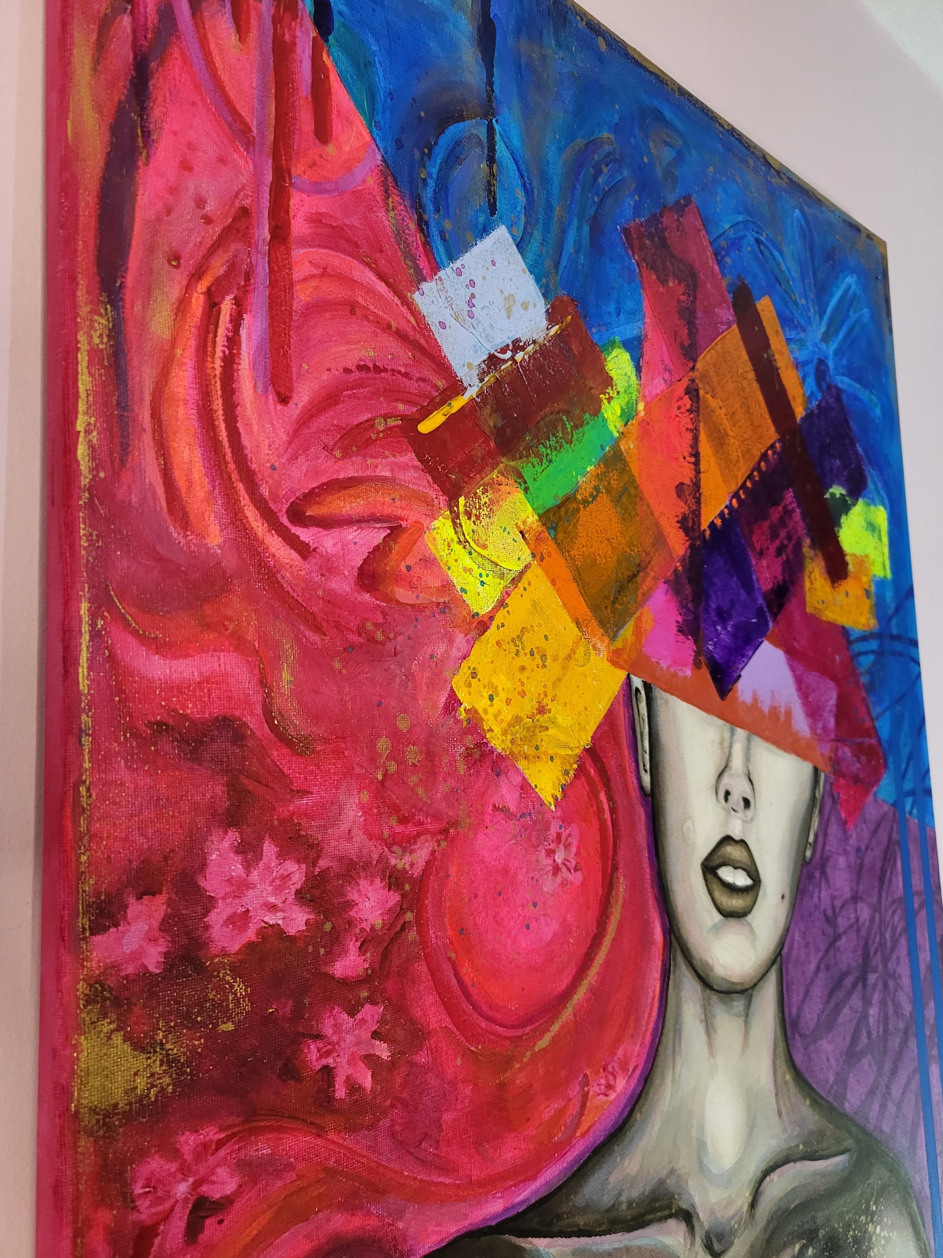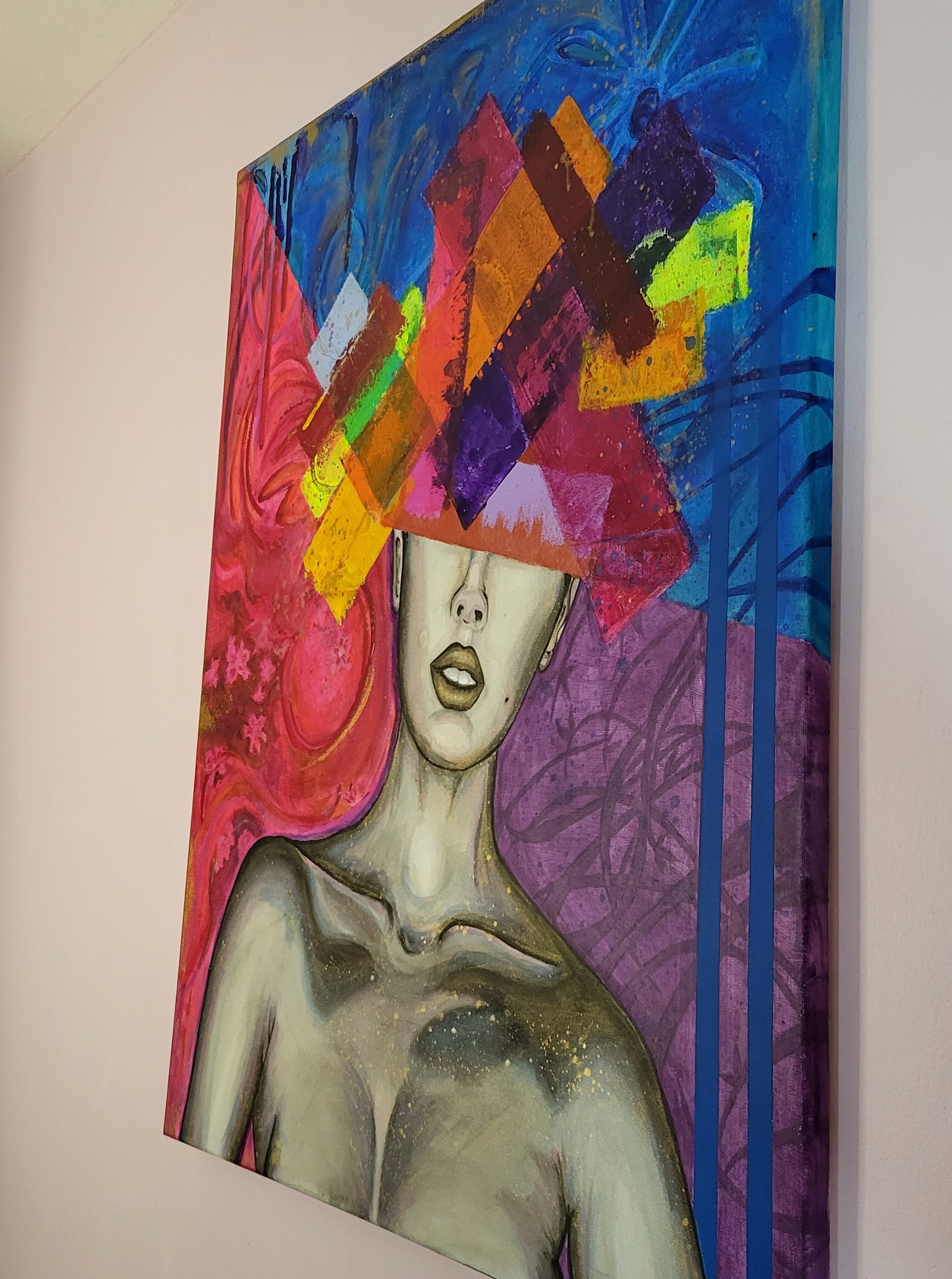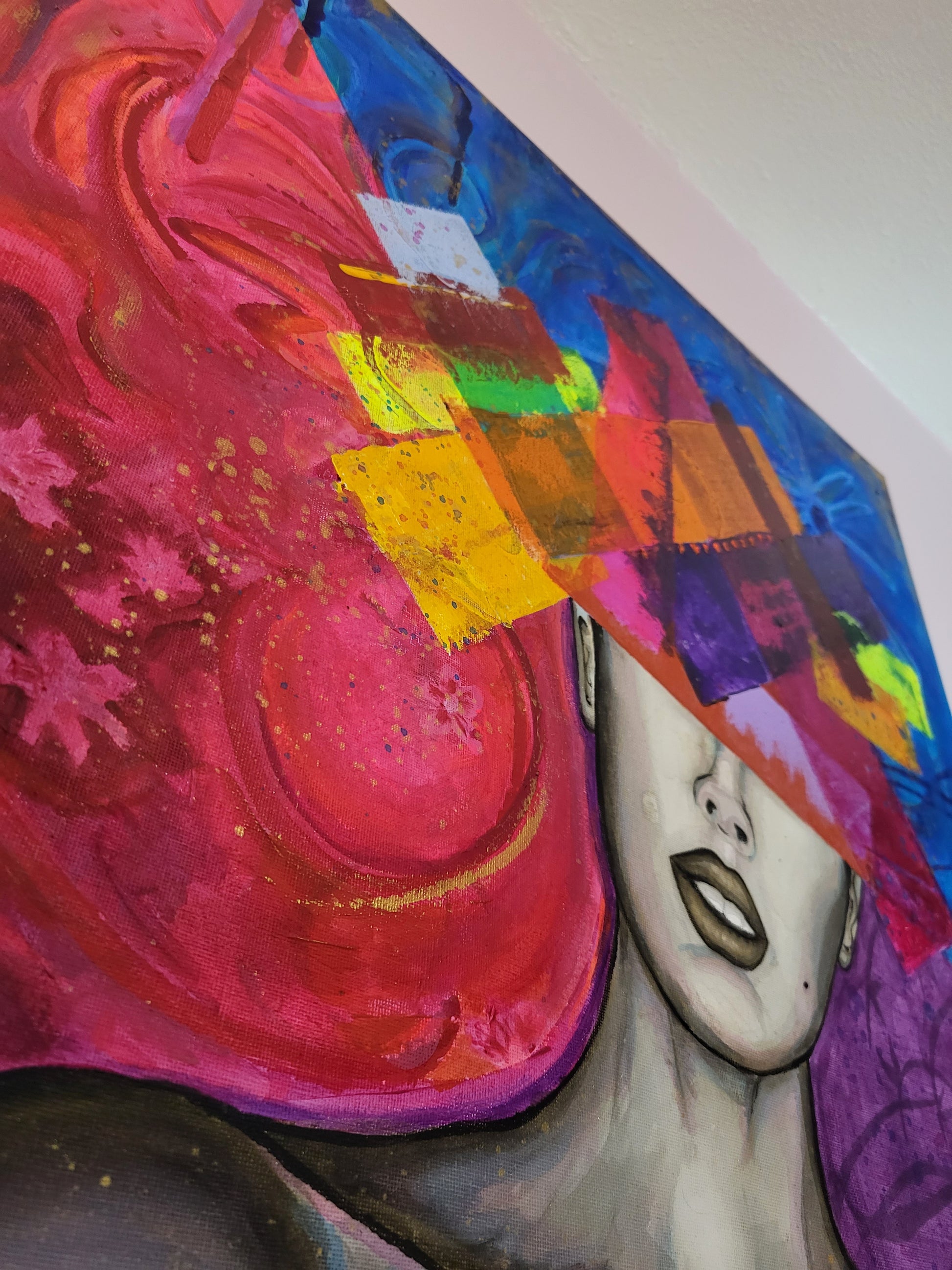 This acrylic and mixed media original canvas painting is finished and sealed with a gloss varnish to ensure longevity, retaining its vividness & vibrancy for up to 200 years.